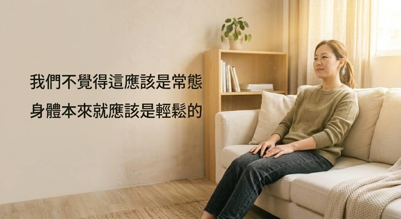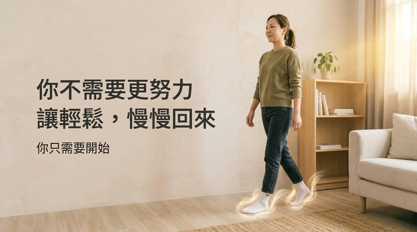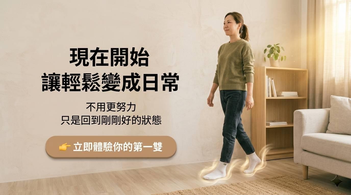 「你是不是也常這樣?」「但你可能也跟大多數人一樣」👉「以為這很正常」「其實,不一定要這樣撐」 「從腳開始,慢慢會不一樣」「你會發現有些緊繃感,其實可以不用再忍」「現在開始,讓輕鬆變成日常」